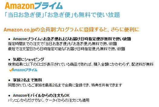 2010/11からアマゾンは1500円以下の商品でも送料無料になったのでそれまでのアマゾンプライムの最大のメリットの何でも送料無料は意味がなくなりました。